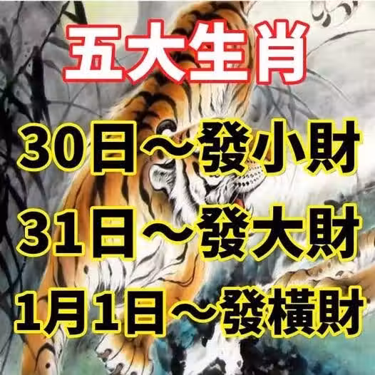 五大生肖:30日發小財,31日發大財,1月1日發橫財