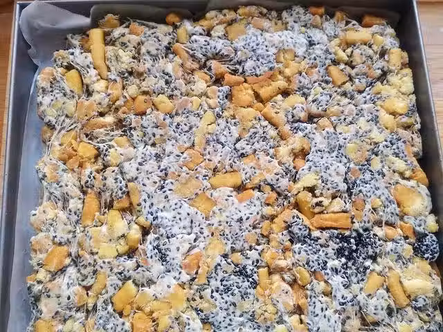 11、最後用鋒利一點的刀將它切成塊狀,即可享用。不加一滴水,不用熬糖漿,這樣做好的沙琪瑪,酥軟好吃,甜而不膩,太香了