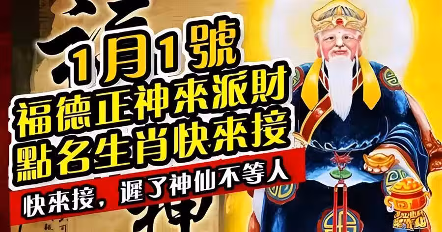 1月1號福德正神來派財,點名生肖快來接,遲了神仙不等人