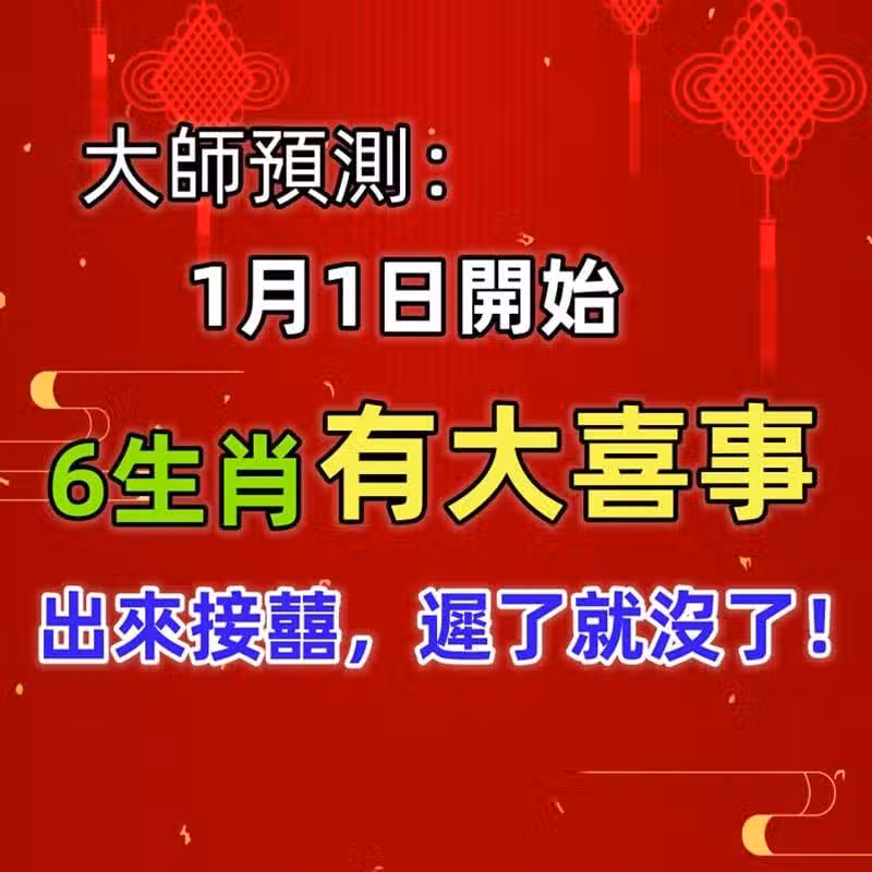大師預測:1月1日開始這6生肖有大喜事,出來接囍,遲了就沒了!