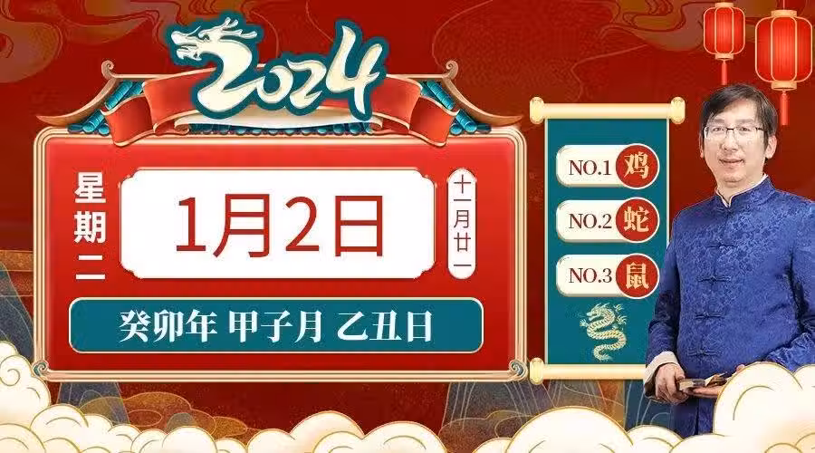 小運播報:2024年1月2日,星期二,農歷十一月廿一 (癸卯年甲子月乙丑日),法定工作日。