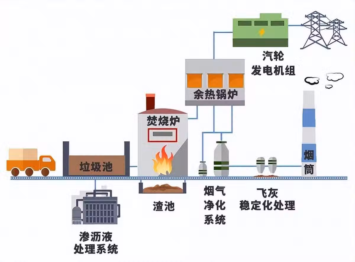 焚燒後的灰渣,體積縮小到原來的20%,可以當做建築材料或者是無害化填埋;垃圾滲出的濾液,經過處理後,達到Ⅲ類水的標準。