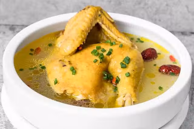 雞湯是一道非常受歡迎的補心菜,它不僅美味可口,而且富含豐富的營養成分,有助於增強身體的免疫力和抗疲勞能力,改善心情,緩解壓力和焦慮情緒。以下是製作雞湯的步驟: