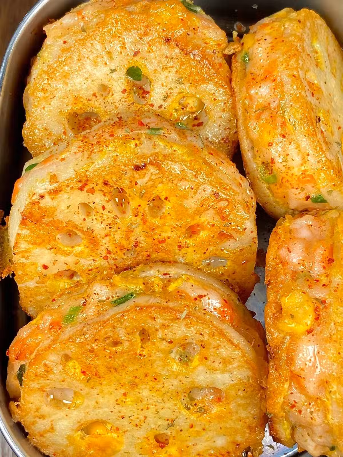 好吃又好看的藕夾蝦滑,外面焦香焦香的,咬開還會爆汁