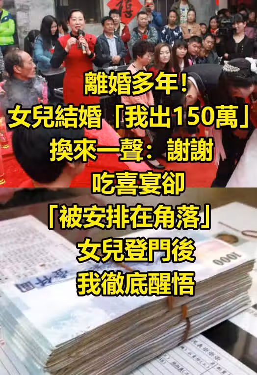 離婚多年!女兒結婚「我出150萬」換來一聲:謝謝 吃喜宴卻「被安排在角落」女兒登門後我徹底醒悟