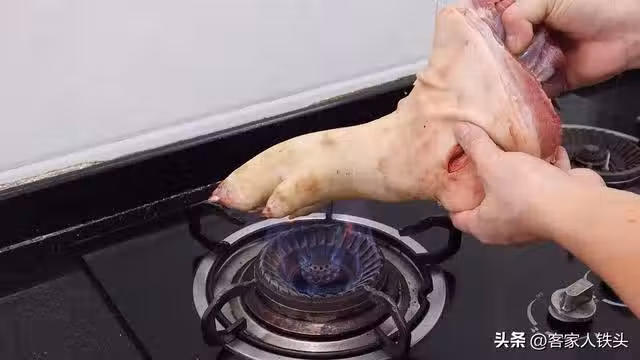 第二步:把處理乾淨的豬腳砍成塊,大小均勻一點,不需要太大塊,如果你家沒有鋒利的刀,這一步最好讓檔主幫你操作,砍好的豬腳我們拿去焯一下水,冷水下鍋,加點蔥姜,再倒點料酒進去,另外我們還要倒點白醋,加了白醋做出來的豬腳比較白;水燒開後,表面會有浮末,這個時候我們可以把浮末撇掉,方便等一下清洗。