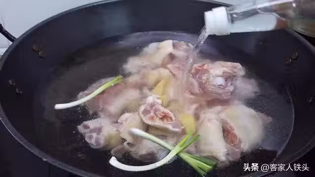 第三步:水開3分鐘後,我們把豬腳撈出來放到清水中,平時我們用熱水來清洗,今天這個做法的豬腳,焯過水後我們就用清水來清洗,那樣做出來的豬皮會比較爽口,再用流動水把表面的雜質沖洗掉就可以了,洗好的豬腳先放到瀝籃中控一下水。