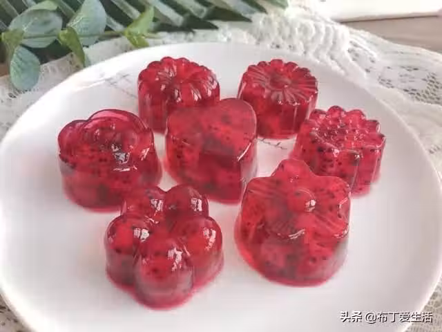 這種果凍的做法是來自於涼粉的靈感。將水果粒裝在事先準備好的果凍模型中,灌入熬好的涼粉,冷卻後就形成了形狀各異的水果果凍。這種果凍製作相對簡單,無任何 副作用食材添加,對於喜歡吃果凍的小孩來說是值得推薦的。自從學會了這種天然水果果凍的做法,我三天兩頭做給小孩吃,就連大人吃過後也讚不絕口。