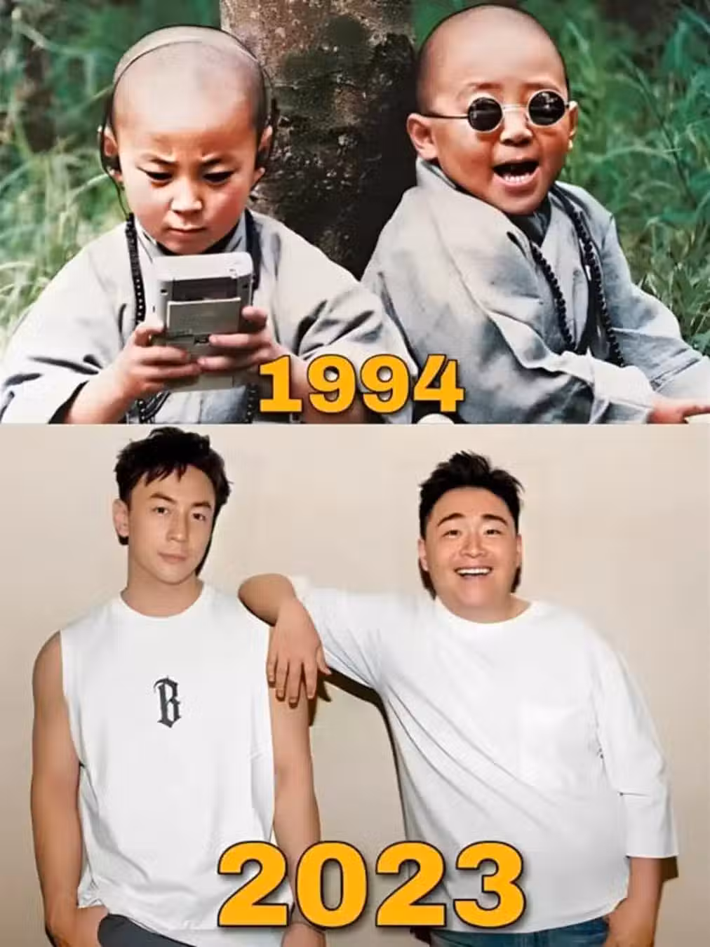時光流逝,兩位小童星逐漸淡出觀眾視線。要不是今年五月郝邵文的一場婚禮,很多觀眾可能都想不起來他們的存在了。是的,當年那個古靈精怪的小胖子結婚了,而那個總喜歡叼著奶嘴耍著功夫的釋小龍做了他的伴郎。兩個童年時期的小玩伴再一次合體,真是爺青回。