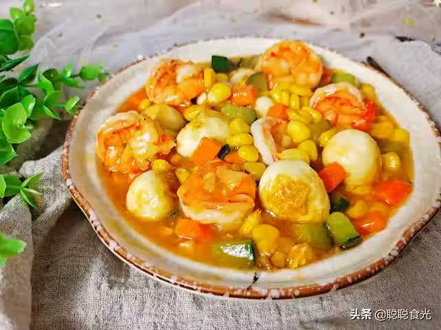 【做法】1、準備蝦仁、鵪鶉蛋、熟玉米粒、黃瓜和胡蘿蔔。