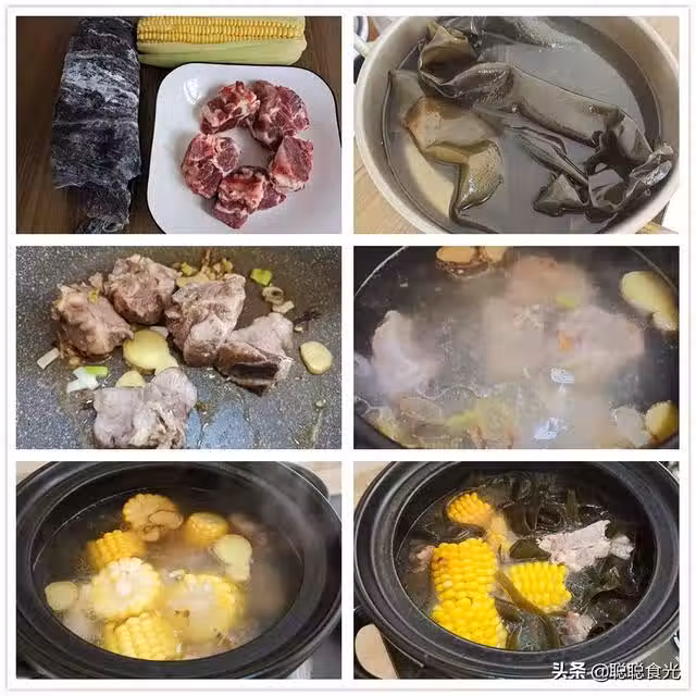 8、燉到半個小時後,最後放入泡發的海帶。燉到海帶軟爛之後,放入鹽和胡椒粉,就可以出鍋了。