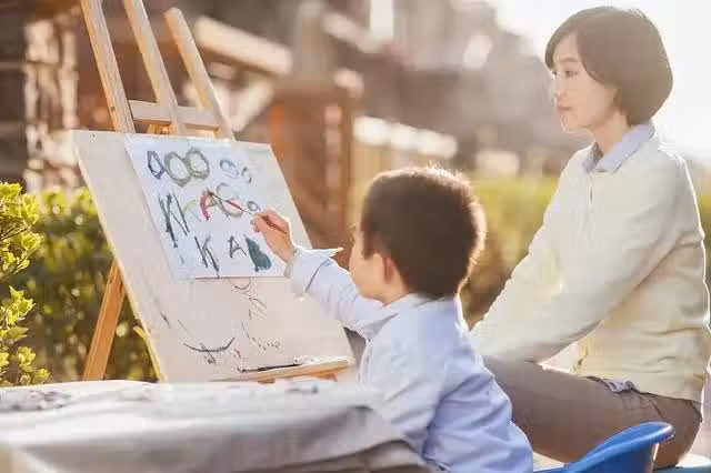 「很順利啊,小明表現很好,老師還誇獎他畫畫進步很快呢。」曉梅頭也不回地說。