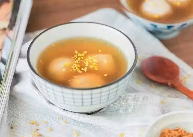 【步驟】芋艿去皮洗乾淨切塊,颳去稜角,切成圓球,加冷水煮開,焯掉澀味後撈出;重新倒水,放入煮過的芋艿,水開加紅糖,大火煮開後小火慢燉,直到芋艿軟糯;藕粉用一點冷水兌開,倒入鍋中攪拌到糖水清透黏稠時關火;加點桂花糖調味後盛出,再撒上一丟丟干桂花裝飾。