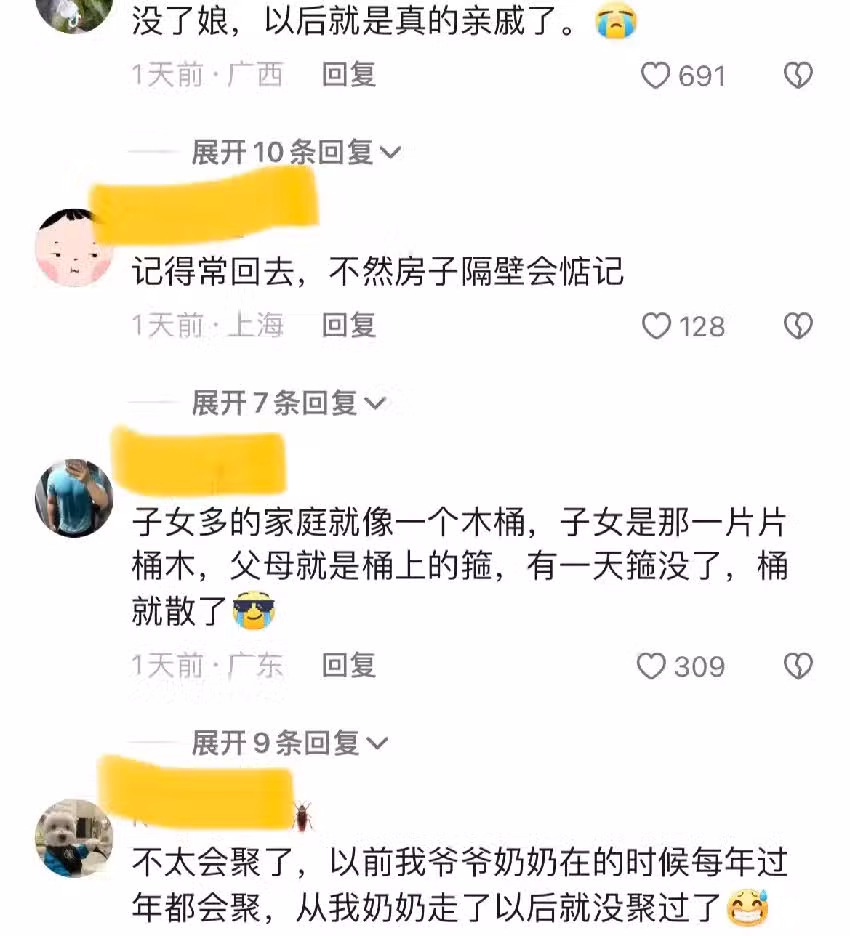 還有網友說,父母在,家就在,父母亡,家則散。