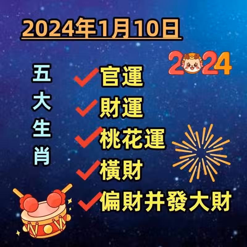 2024年1月10日,官運 財運 桃花運 橫財偏財並發大財的5生肖