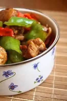 雞400克,青椒1隻,紅椒1隻,啤酒500克,醬油10克,糖5克,鹽4克,油3克