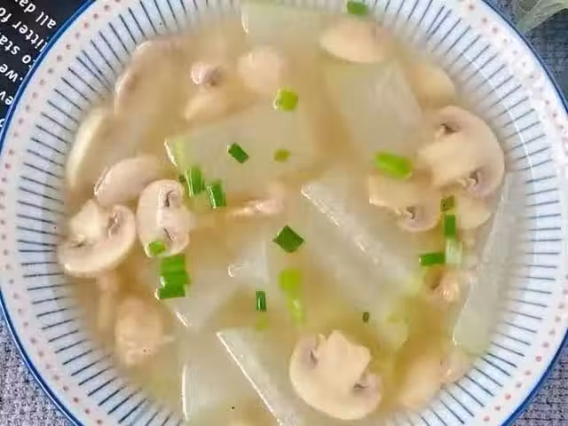 口蘑、冬瓜、蔥花、蒜末、胡椒粉、食用油、食鹽、雞精、清水