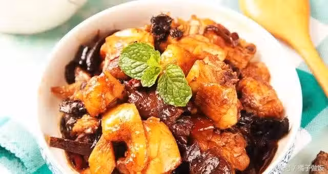 4 倒入雞塊,加入料酒、生抽、老抽,炒勻。