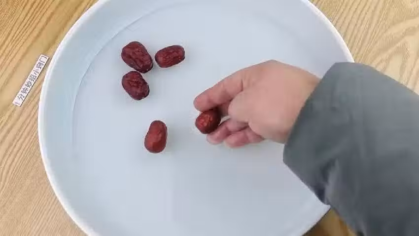 首先我們把紅棗放到清水裡面,把紅棗搓洗一下,洗去表面的一些灰塵髒東西,在清洗的同時還可以使紅棗吸收一部分的水分,這樣就有利用給紅棗去核。