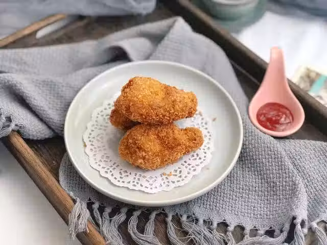 小雞腿1000克(約15個左右)、雞蛋2個、生薑絲少許、麵包糠適量、澱粉適量、生抽少許、料酒少許、蚝油少許、黑胡椒粉少許