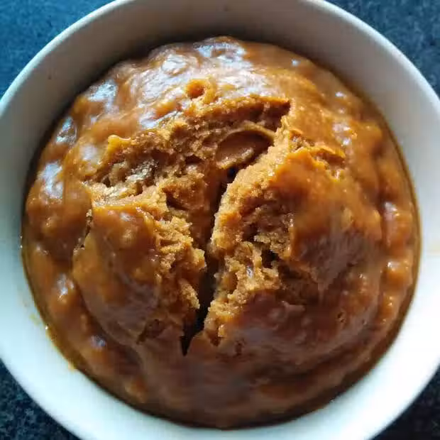 3、倒入蒸糕的器皿內,盛至八、九分 滿。