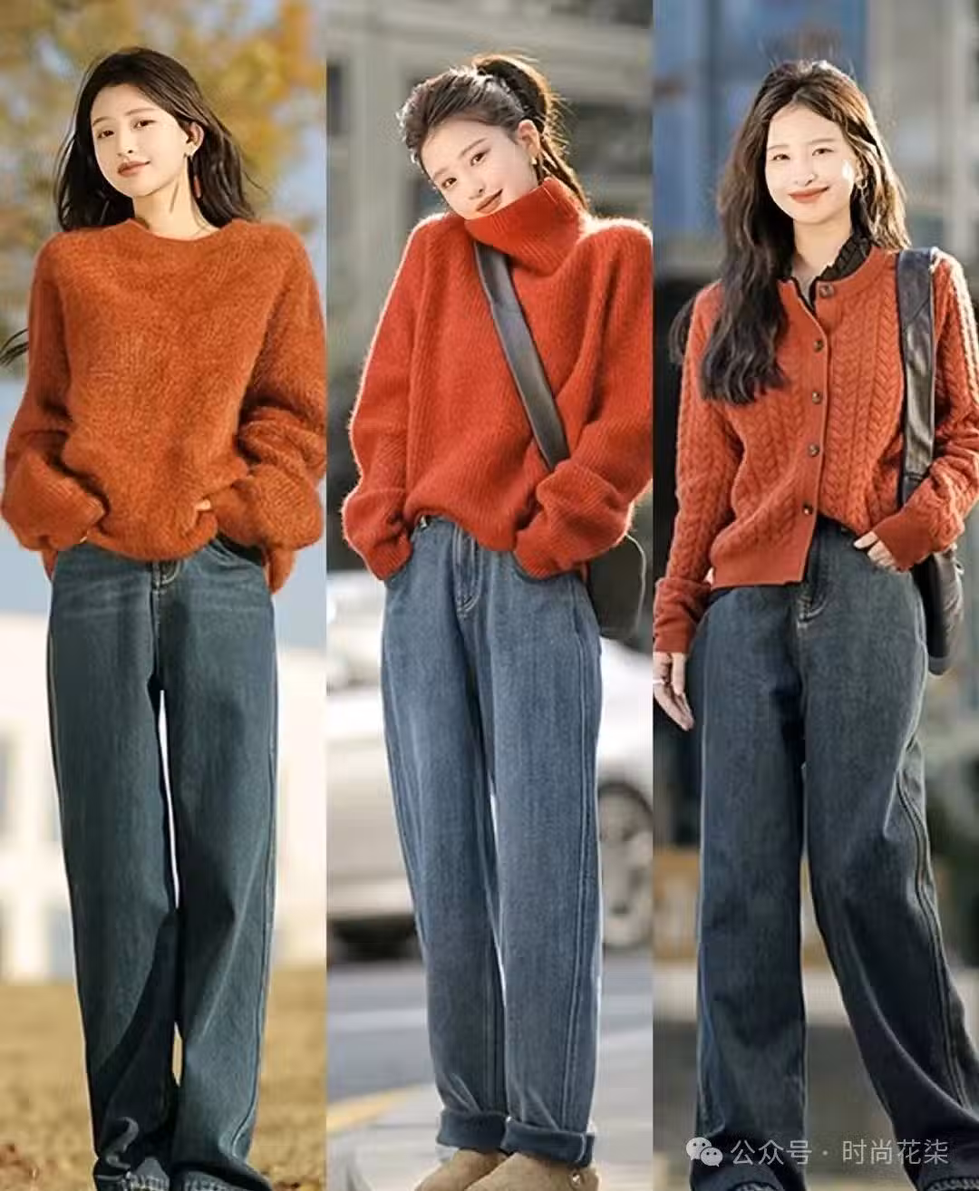 過年可以選擇一件洋紅色的毛衣,無論是內搭還是單穿,搭配簡單的牛仔褲,都會新的節日氛圍,顯得活潑減齡。