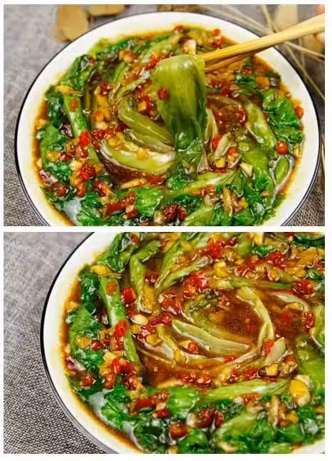 1.生菜洗凈,加入沸水中煮熟,撈出瀝干水分,碼入盤中備用。