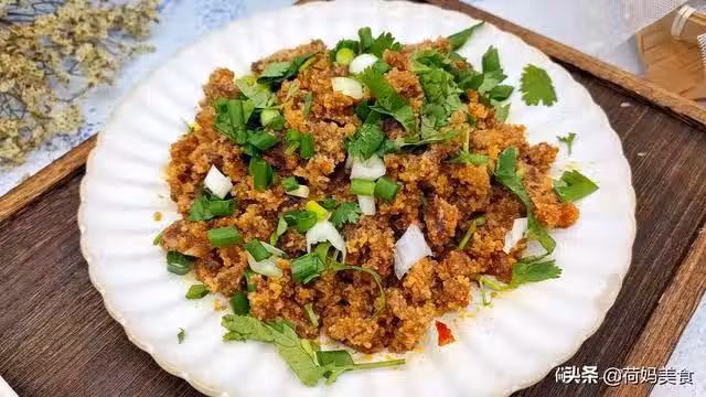 蒸好的牛肉取出,根據自己的口味添加紅油,辣椒粉、花椒粉和味精,撒上香菜和蔥花即可。