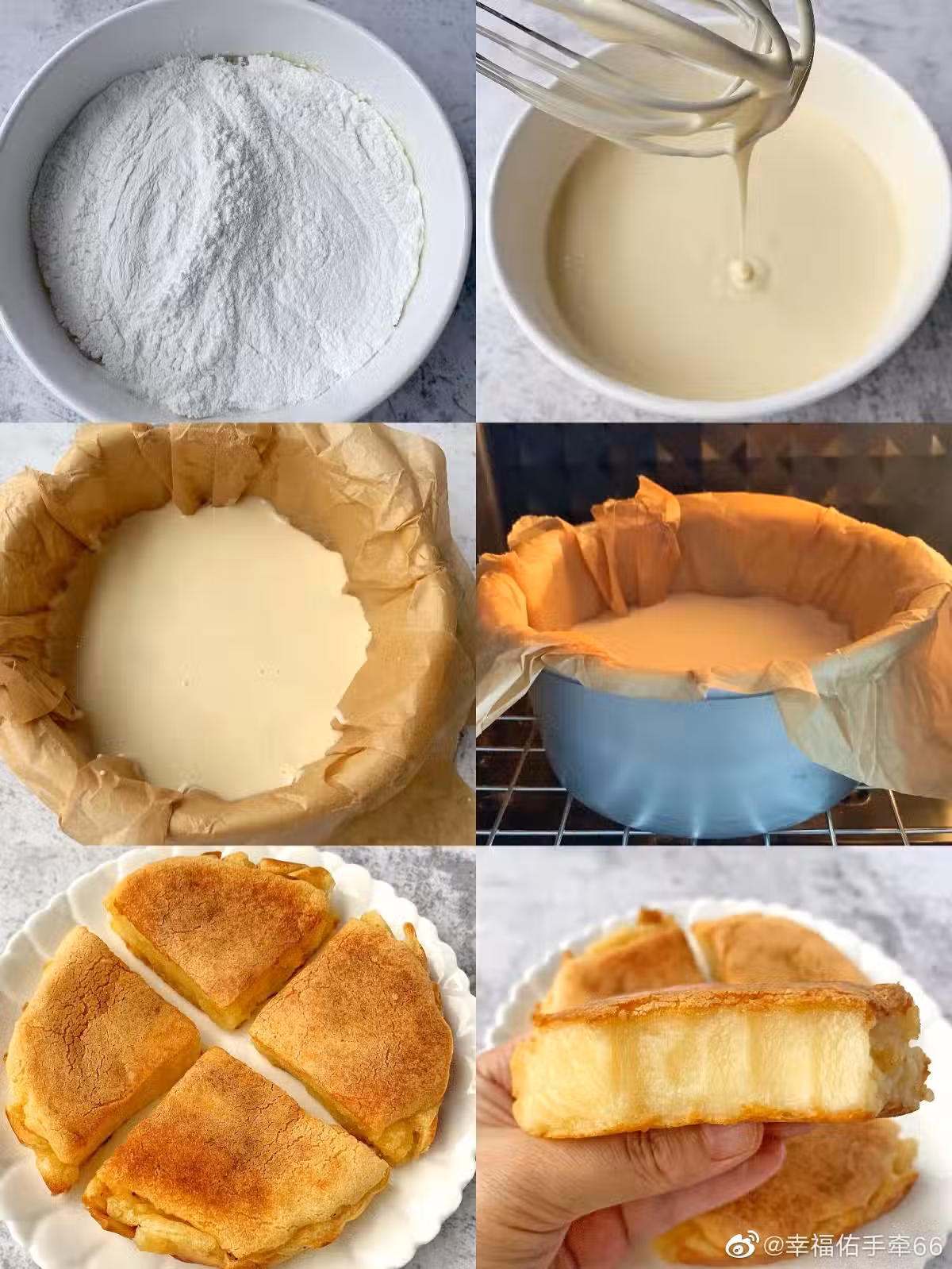 ️2.篩入糯米粉,攪拌至無顆粒可流動濃稠狀麵糊,倒入墊有油紙的烤盤