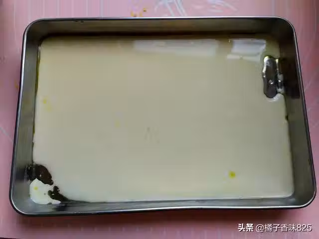 6、把盤子往涼水中,浸泡一下,用刮刀輕鬆的就把小米腸粉鏟下來了,然後就可以做下一張小米腸粉
