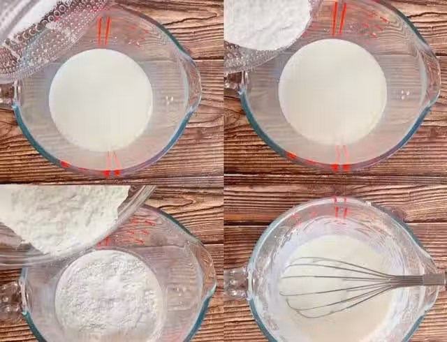 2、製作真的很簡單,直接把糯米粉、玉米澱粉、牛奶和白糖全部倒在一起,然後攪拌均勻就好了,要攪拌到麵糊裡面沒有可以才行哦,這樣做出來的糯米糍才Q彈軟糯。怕攪拌不開的,可以先把糯米粉和玉米澱粉過一下篩,或是攪拌均勻了以後過一下篩都行。