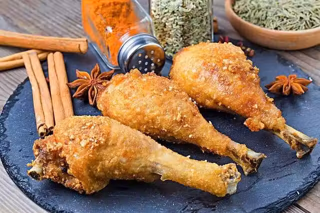 5、撈出後再將油溫中大火加熱,將雞腿再復炸1分鐘左右,撈出撒上點椒鹽粉即可。