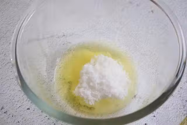 3、將奶粉和玉米澱粉混合過篩到打發好的蛋白中,用刮刀翻拌均勻