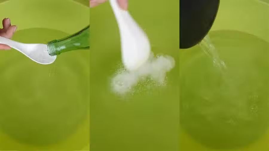 首先我們準備一個大一點的盆,在盆裡面倒入適量的小蘇打和食鹽。小蘇打有很強的去污效果,而食鹽則具有殺菌的作用。這兩種材料的組合能夠有效清除拖把上的污垢。