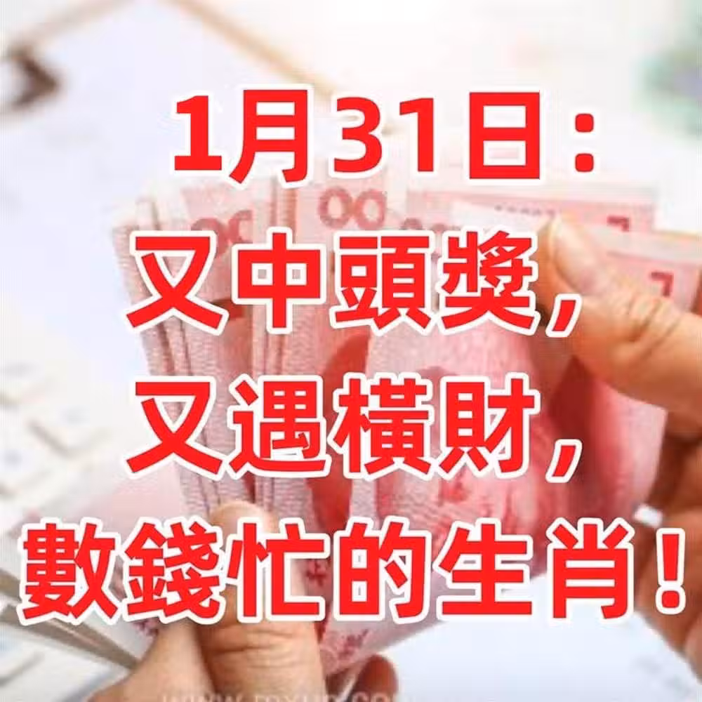 1月31日(1月最後一天)又中頭獎,又遇橫財,數錢忙的生肖!