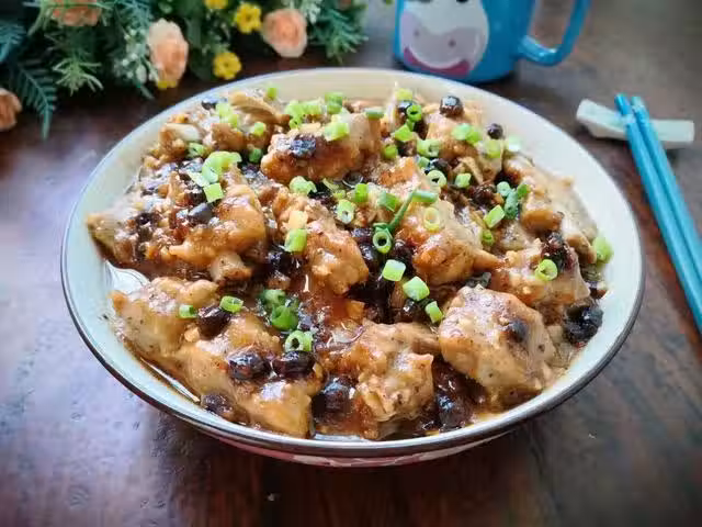 食材:排骨、豆豉、蔥、姜、澱粉、鹽、生抽、胡椒粉、料酒。