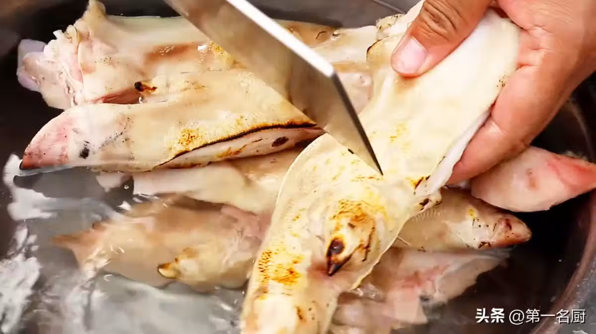 2.鍋中加入適量的清水,涼水下入豬蹄,放入小蔥和薑片,加入適量的料酒去腥,大火燒開,撇去鍋中的浮沫,改中火焯水5分鐘焯好以後撈出,放入水盆中,再次清洗一遍,洗去表面的浮沫,撈出備用。