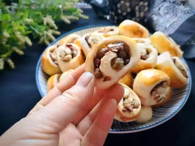食材:麵粉、牛奶、蜜豆、酵母、黃油。