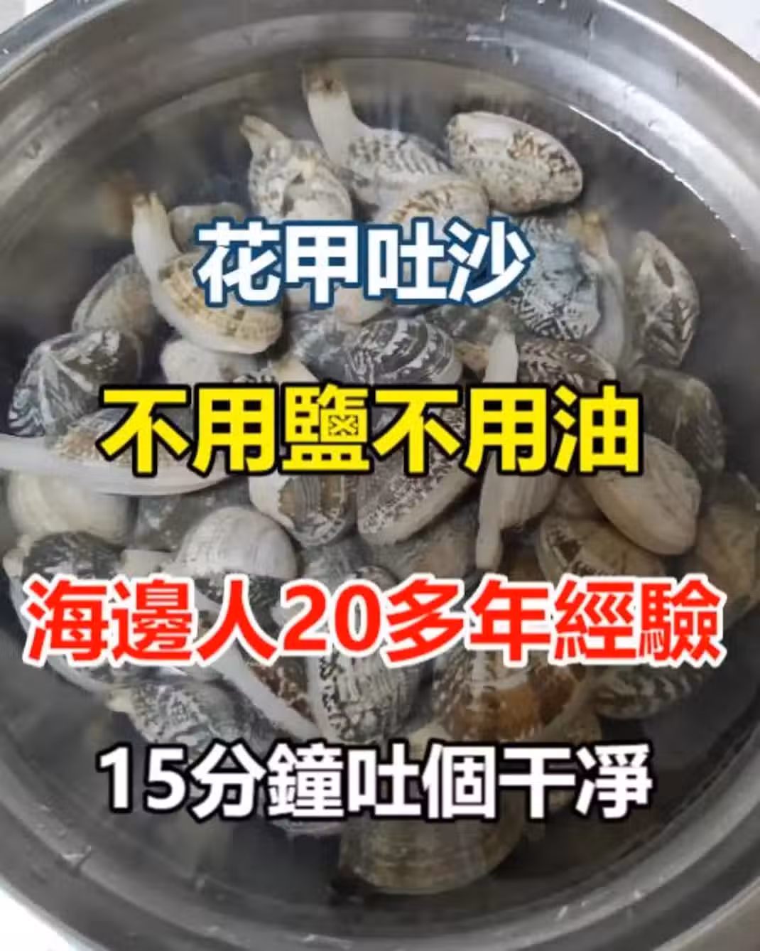 花甲吐沙,不用鹽不用油,海邊人20多年經驗,15分鐘吐個干凈