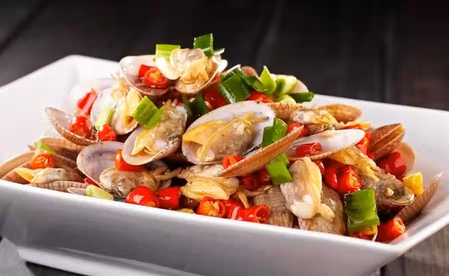 5、搖晃好以後,把花甲倒出來,重新倒在水中清洗,簡單清洗1、2遍,把泥沙洗干凈之後,就可以將水分瀝干,準備來烹飪啦。這樣做出來,花甲肉非常嫩,沒有多餘的臟東西,吃著也鮮美。