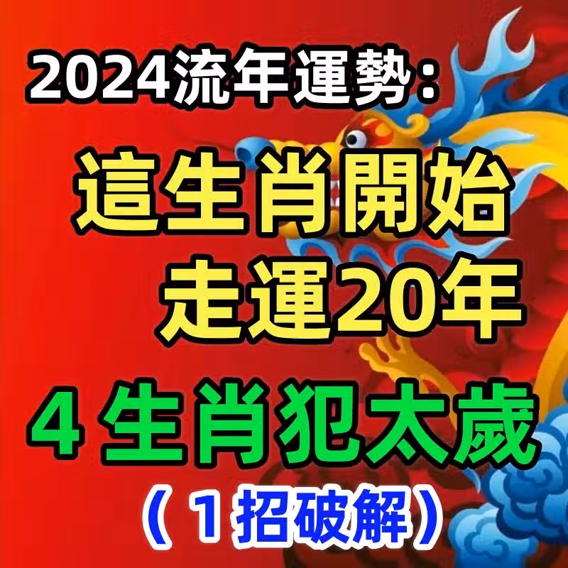2024流年運勢:這生肖開始走運20年,4生肖犯太歲1招破解