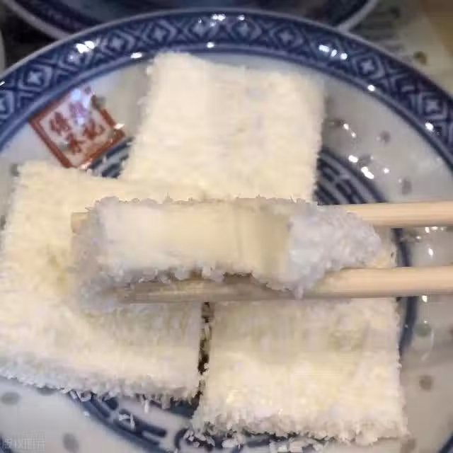 牛奶+澱粉+糖攪拌均勻,小火攪拌至粘稠,模具刷油裝入,冰箱冷藏2小時,取出脫模,切成條狀,裹上一層玉米澱粉,裹上雞蛋液,鍋中少油煎至金黃。