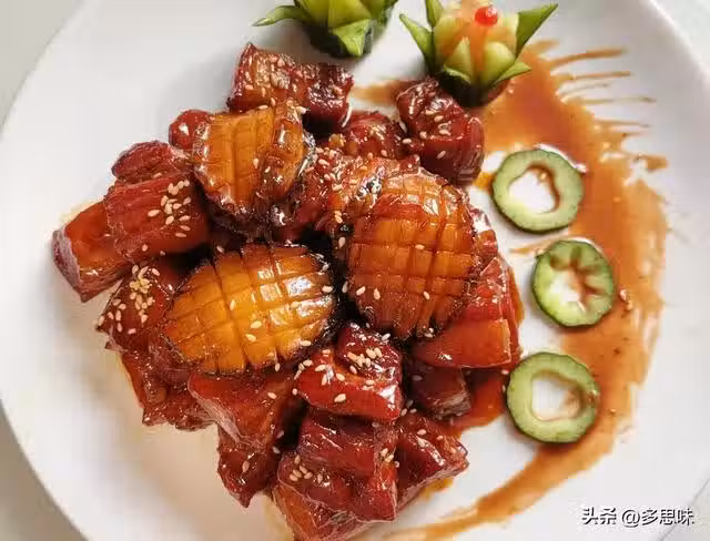 5、一道老少咸宜的紅燒肉燜鮑魚就好啦!肥而不膩,搭配米飯,一口體驗脂肪和碳水的雙重快樂!一吃一個不吱聲兒!誰吃誰迷糊!