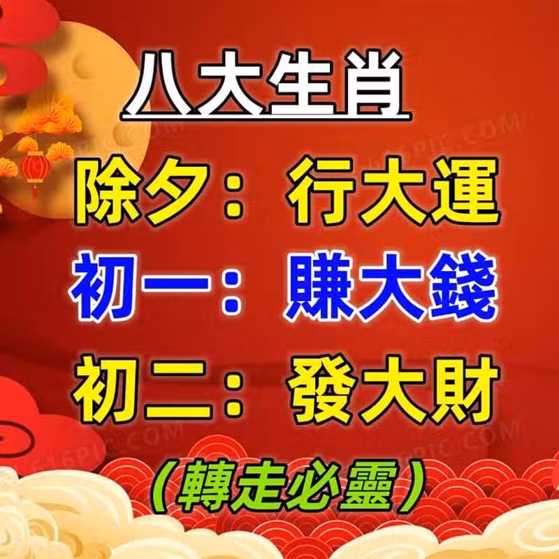 八大生肖好運來:除夕行大運,初一賺大錢,初二發大財