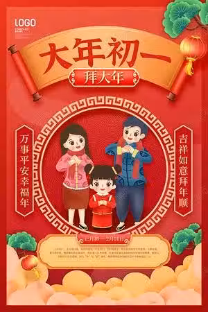 大年初一,給您拜年,祝福:財到、運到、福氣到,家庭幸福,福壽雙全