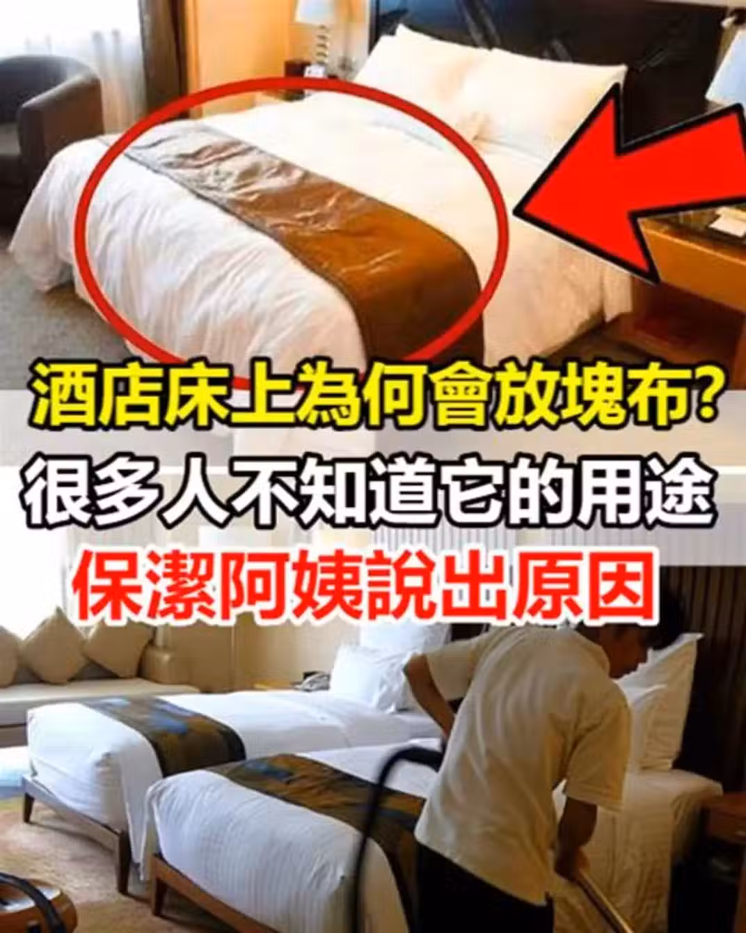 酒店床上為何會放塊布?很多人不知道它的用途,保潔阿姨說出原因!