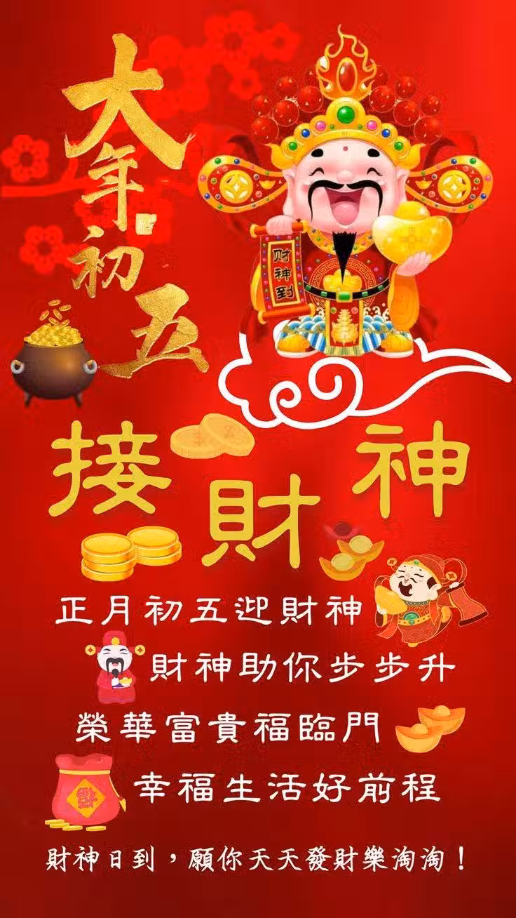 正月初五迎財神,以上老傳統大家一定要記得做,而且越早越好,破窮立富。讓我們互道一聲「恭喜發財」,願所有人財源滾滾