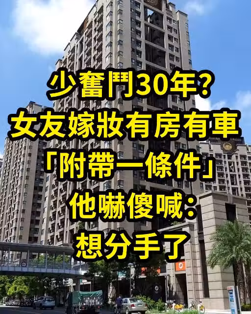 少奮鬥30年?女友嫁妝有房有車「附帶一條件」