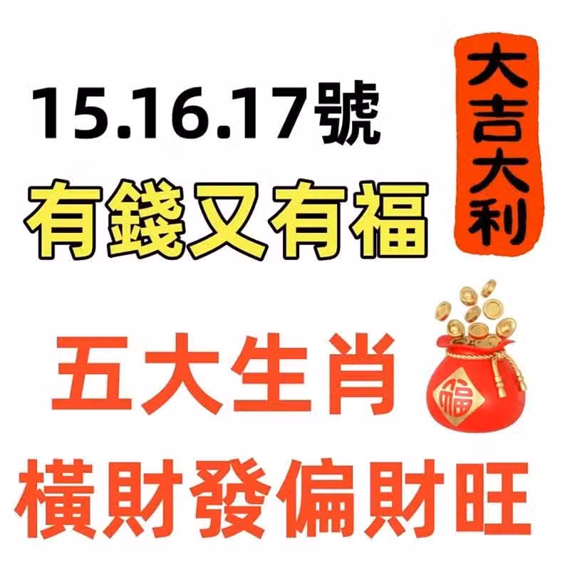 15.16.17號有錢又有福,五大生肖橫財發偏財旺