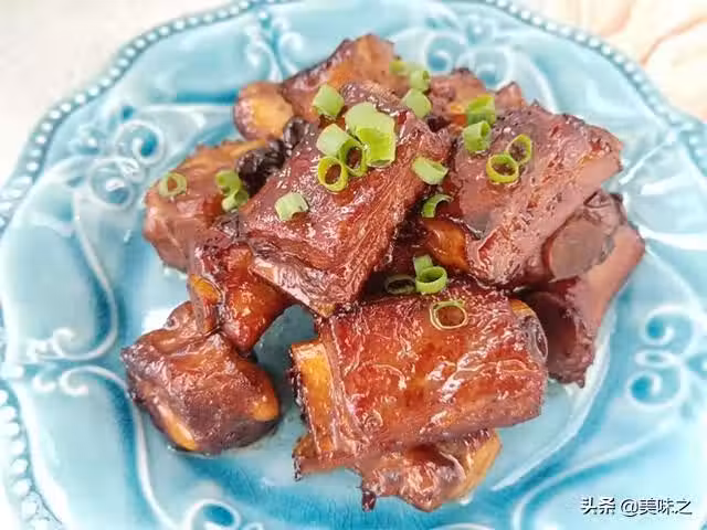 排骨400克、色拉油少許、白糖1勺、蔥花少許、生抽1勺、老抽少許、鹽少許、薑片適量、八角適量。